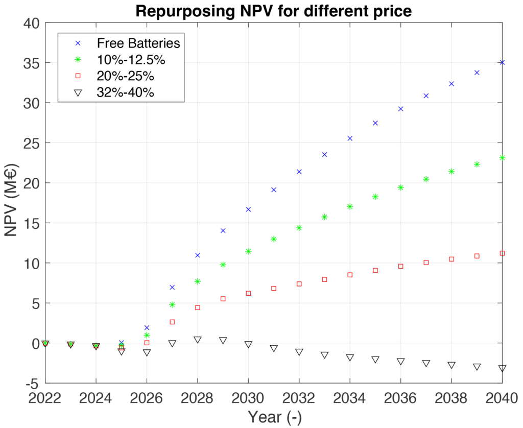 The goal of the economic assessment is to create a cost model related to the SLB business where different scenarios are analysed to see which is the business strategy more profitable. Two options could be repurposing (reusing the battery pack as it is) or refurbishing (dismantling the pack and extract either the modules or cells).